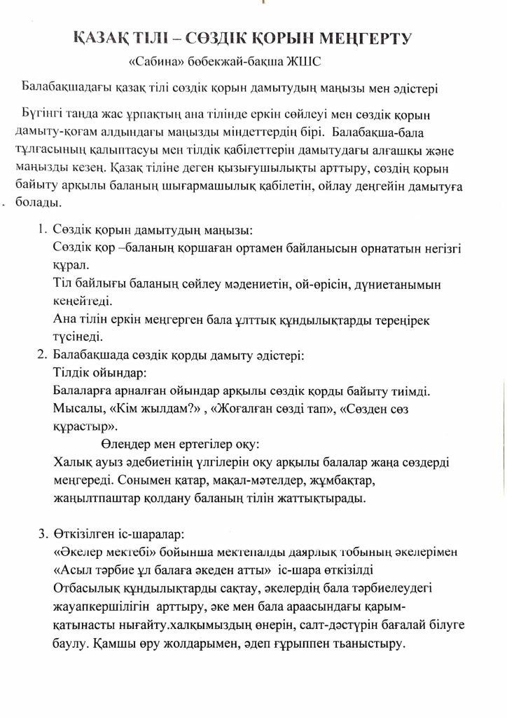 ҚАЗАҚ ТІЛІ – СӨЗДІК ҚОРЫН МЕҢГЕРТУ